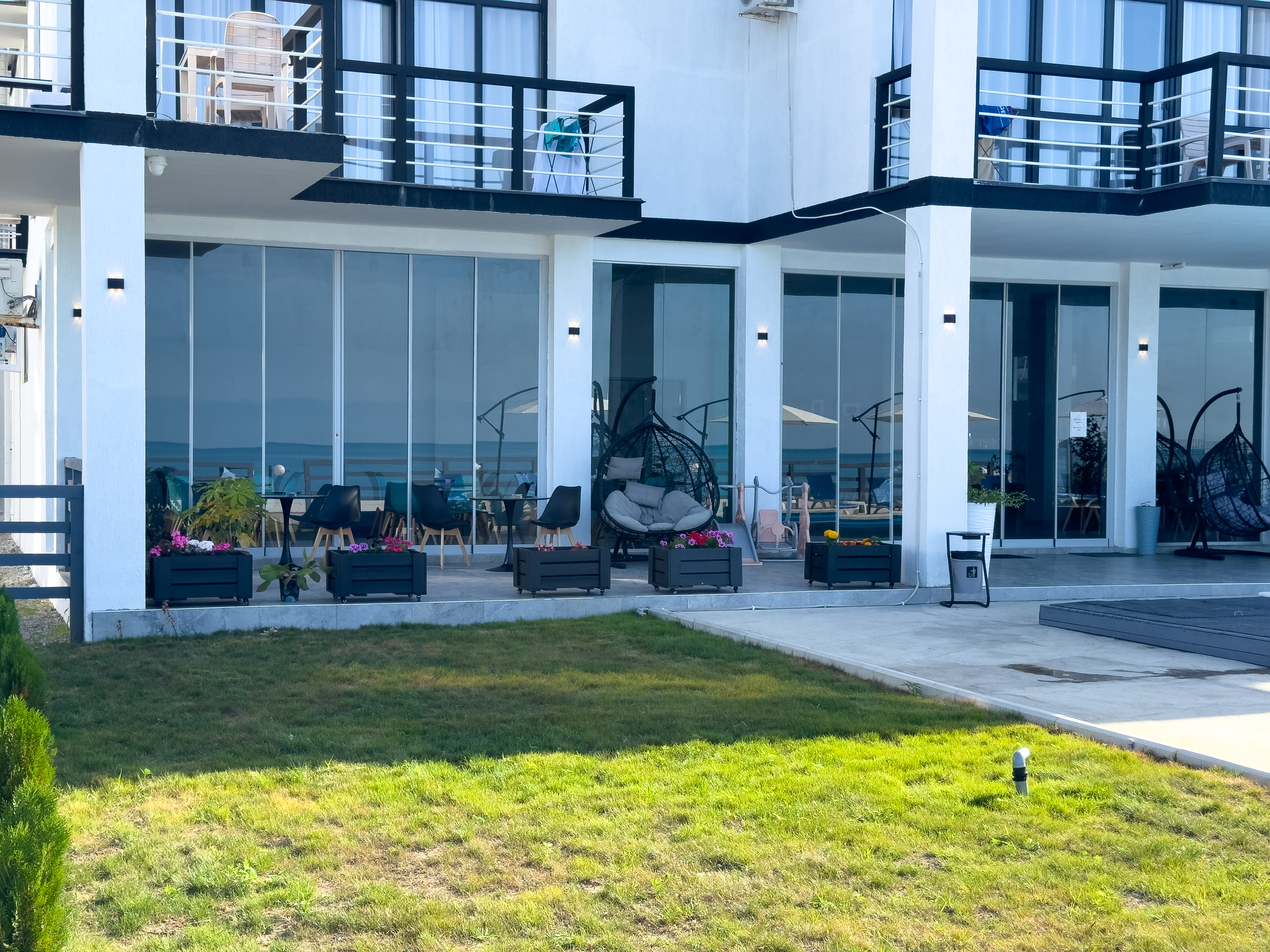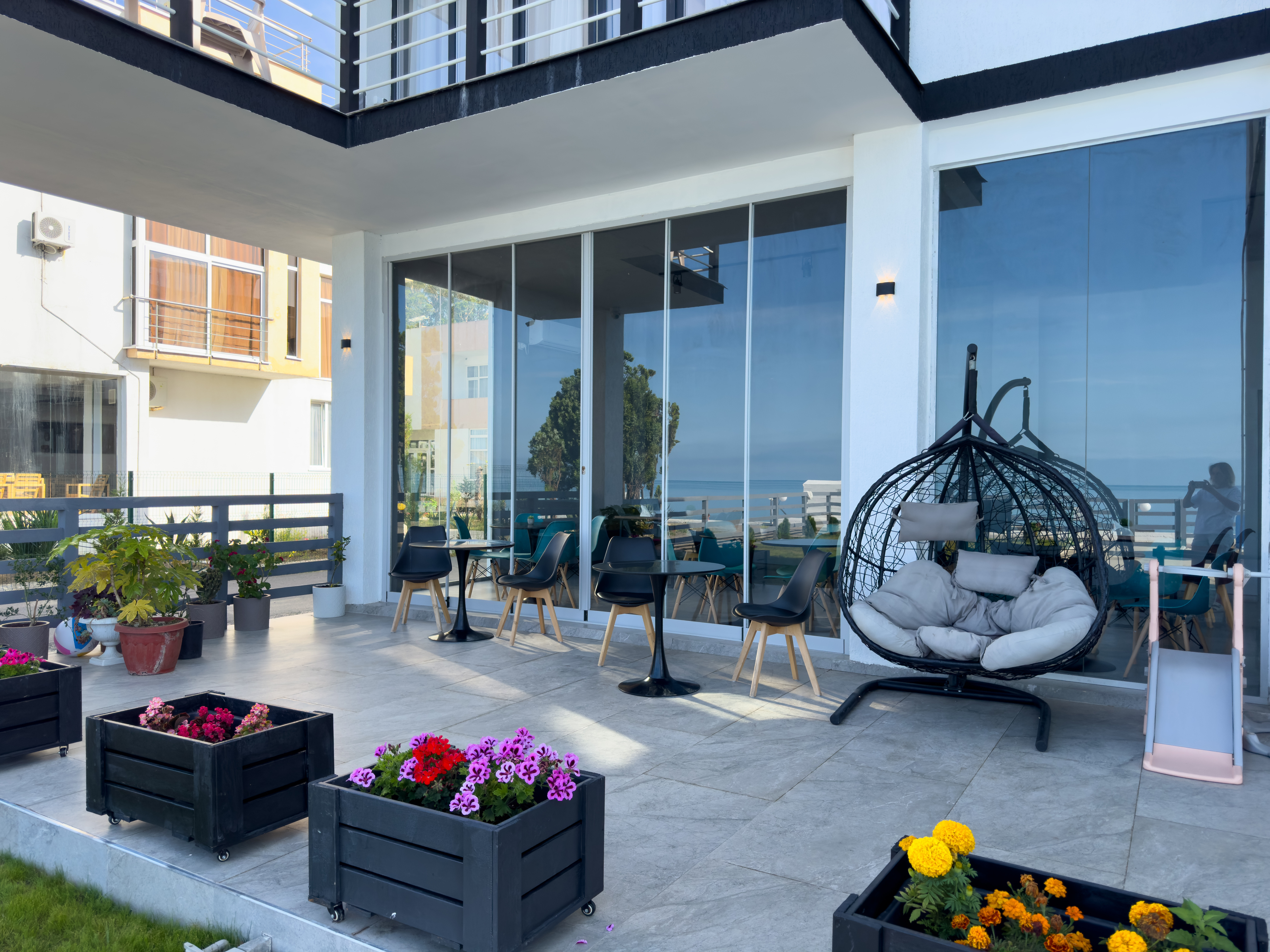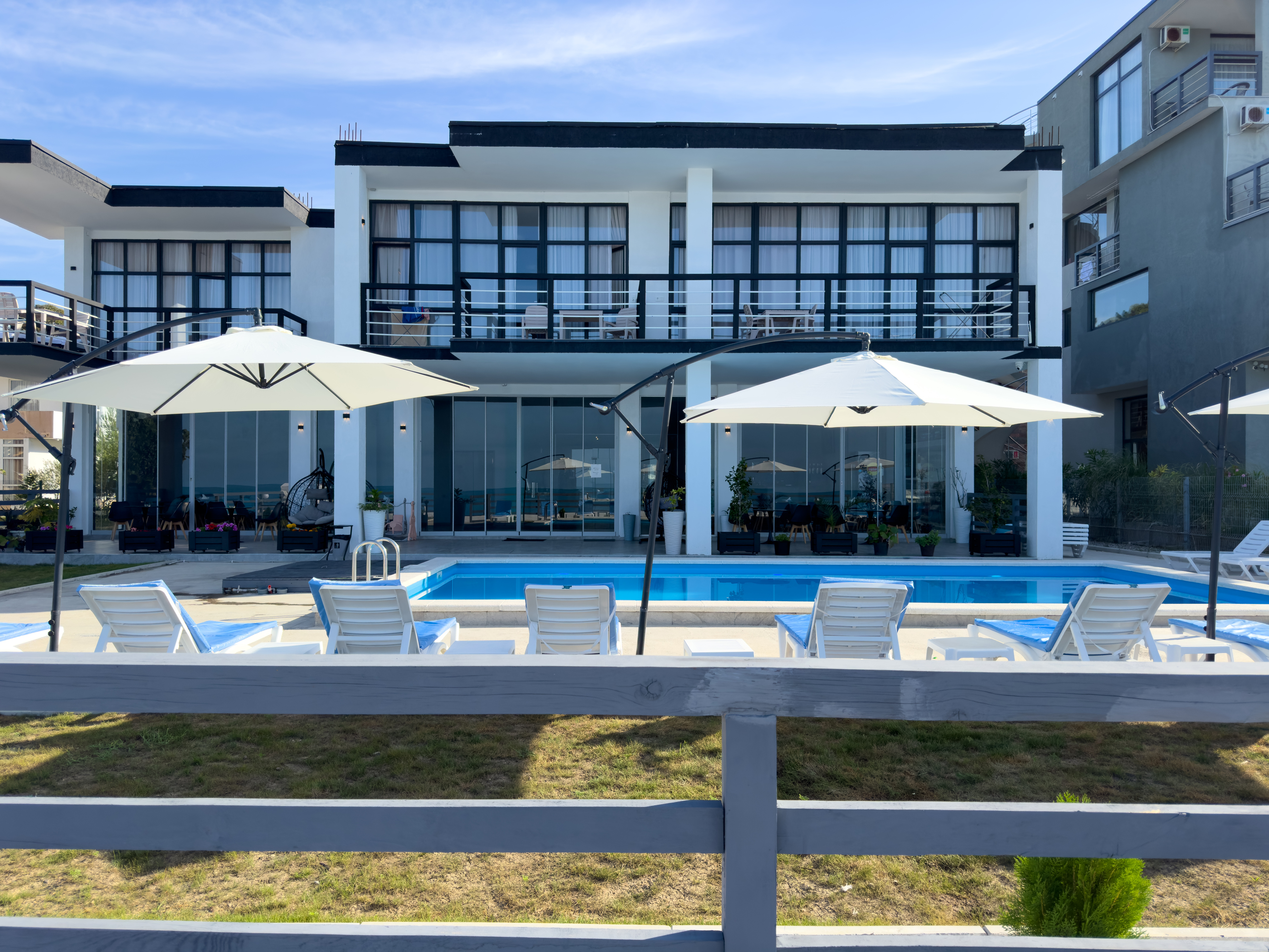 Пансионат ЛАЗУРНЫЙ БЕРЕГ - небольшой комфортабельный пансионат старой части Гагры – находится на первой береговой линии, всего в 20 м от собственного благоустроенного песчано-галечного пляжа. В пешей доступности от пансионата располагаются основные достопримечательности города: легендарный ресторан «Гагрипш», символ курорта - Колоннада 1911 года, замок и парк принца Ольденбургского, а также различные рестораны, бары и кафе.