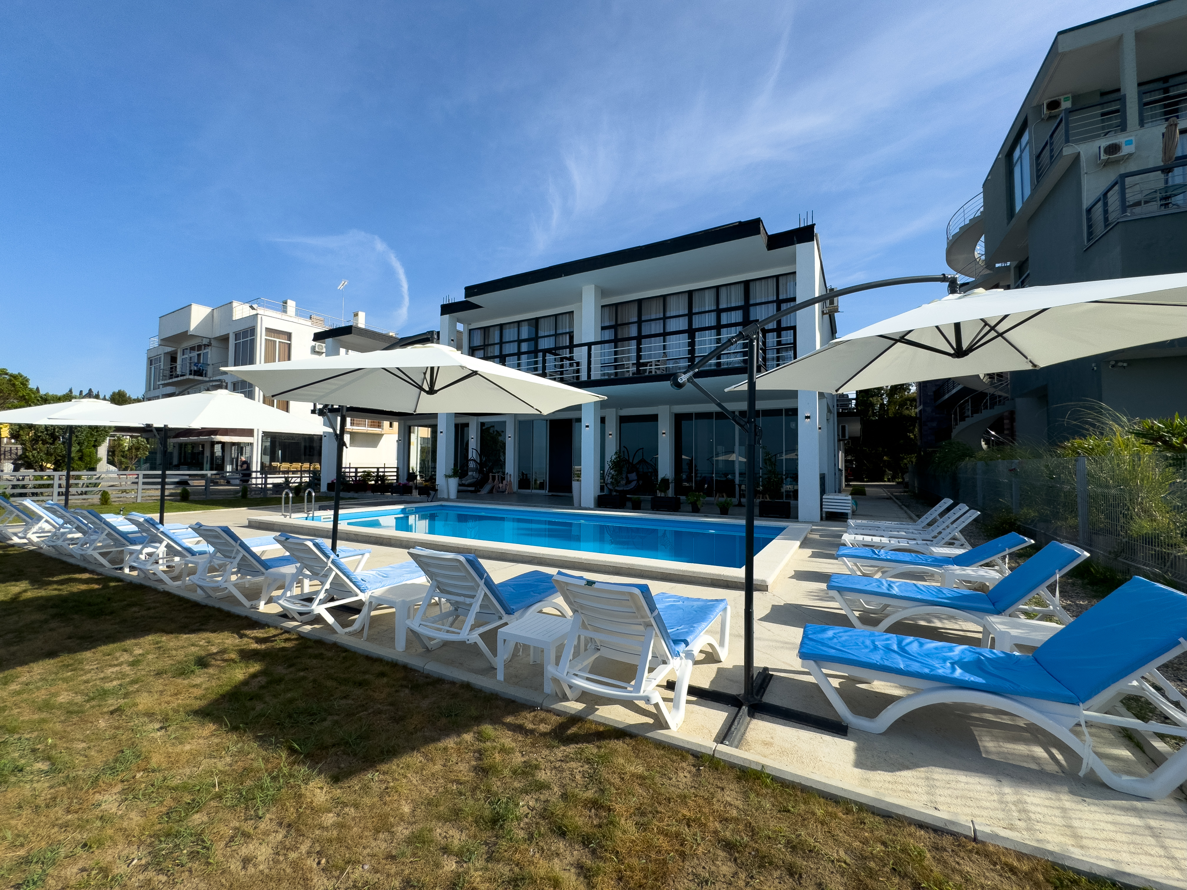 «Аквамарин» расположен практически на берегу Черного моря. К услугам гостей частный пляж, открытый бассейн, сад, бар и ресторан европейской кухни.