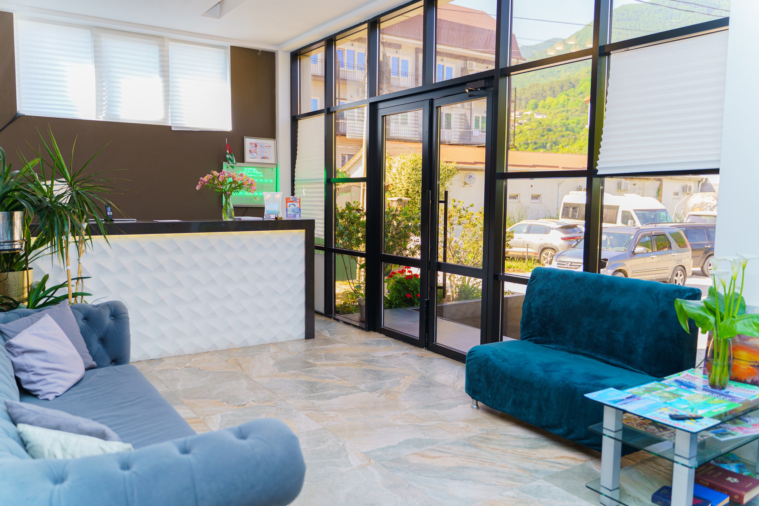 Новый комфортабельный гостиничный комплекс располагается на собственной закрытой территории на берегу моря, неподалеку от города Новый Афон.