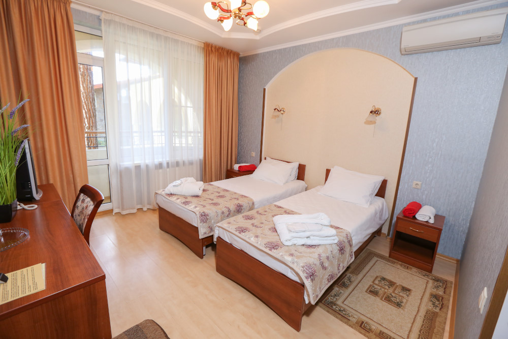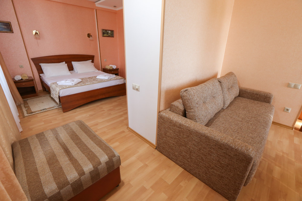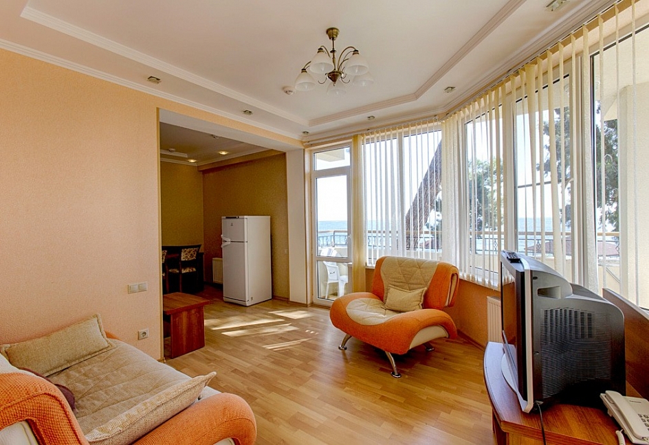 Расположение: Первая линия у моря (50 м до пляжа), 5 км до центра, 64 км до аэропорта Адлер