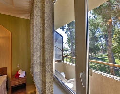 Поделюсь впечатлениями от отдыха в отеле «Дельфин». Первое, что впечатляет в Пицунде – потрясающий воздух, напоенный ароматами эвкалиптов. Обстановка симпатичная, очень спокойно. Во дворе прекрасный сад.