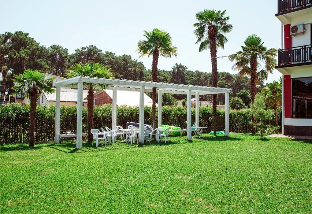 Расположение: Первая линия у моря (100 м до пляжа), 2 км до центра Пицунды, 58 км до аэропорта Адлер