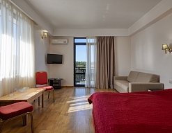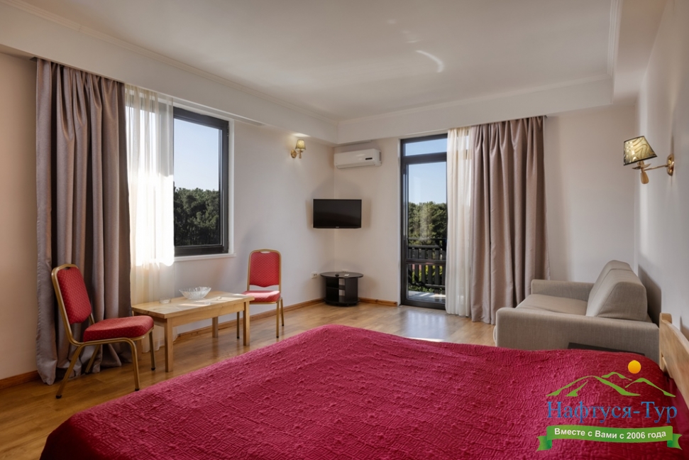 Впечатление от отдыха довольно хорошее.Номера просторные и комфортные. Горничная производит уборку каждый день.Девочки на рецепции заслуживают особой похвалы.Питание 3-х разовое с блюдами кавказкой,русской и европейской кухни.
