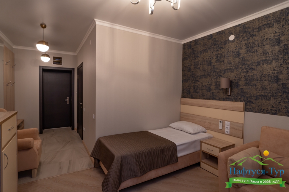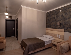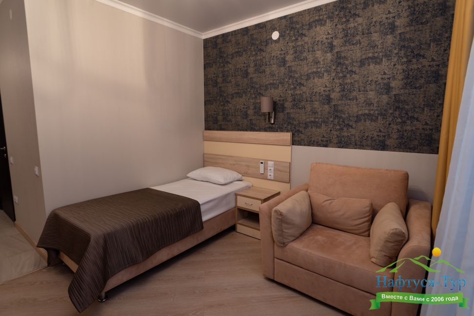 Отдыхали в «Литфонде» в августе 2015. Проживали на втором этаже. Были семьей с ребенком 4 лет. Номер попался неплохой, большая кровать на двоих с хорошим матрасом. Как дополнительное место, было предусмотрено кресло-кровать.