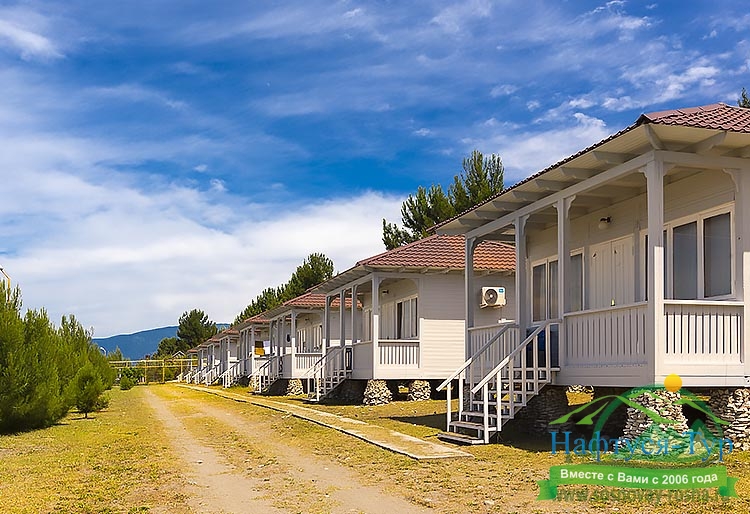 Территория большая, вся в зелени, расположена недалеко от моря. Наш домик располагался в саду, номер очень понравился. Убирались в номере каждый день, на 5 день меняли белье. Персонал весь доброжелательный, если возникли вопросы помогут. В столовой кормили вкусно и сытно, была выпечка, фрукты. Мне понравилось.