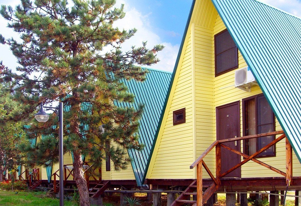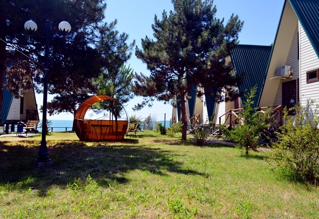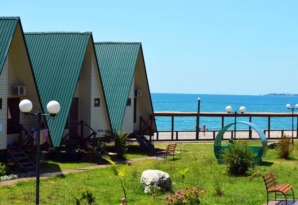 Пансионат состоит из 64 двухместных 2х – этажных уютных семейных коттеджей в европейском стиле, которые выстроились в ряд на утопающей в зелени территории, расположенной всего 10 м от Черноморского побережья.