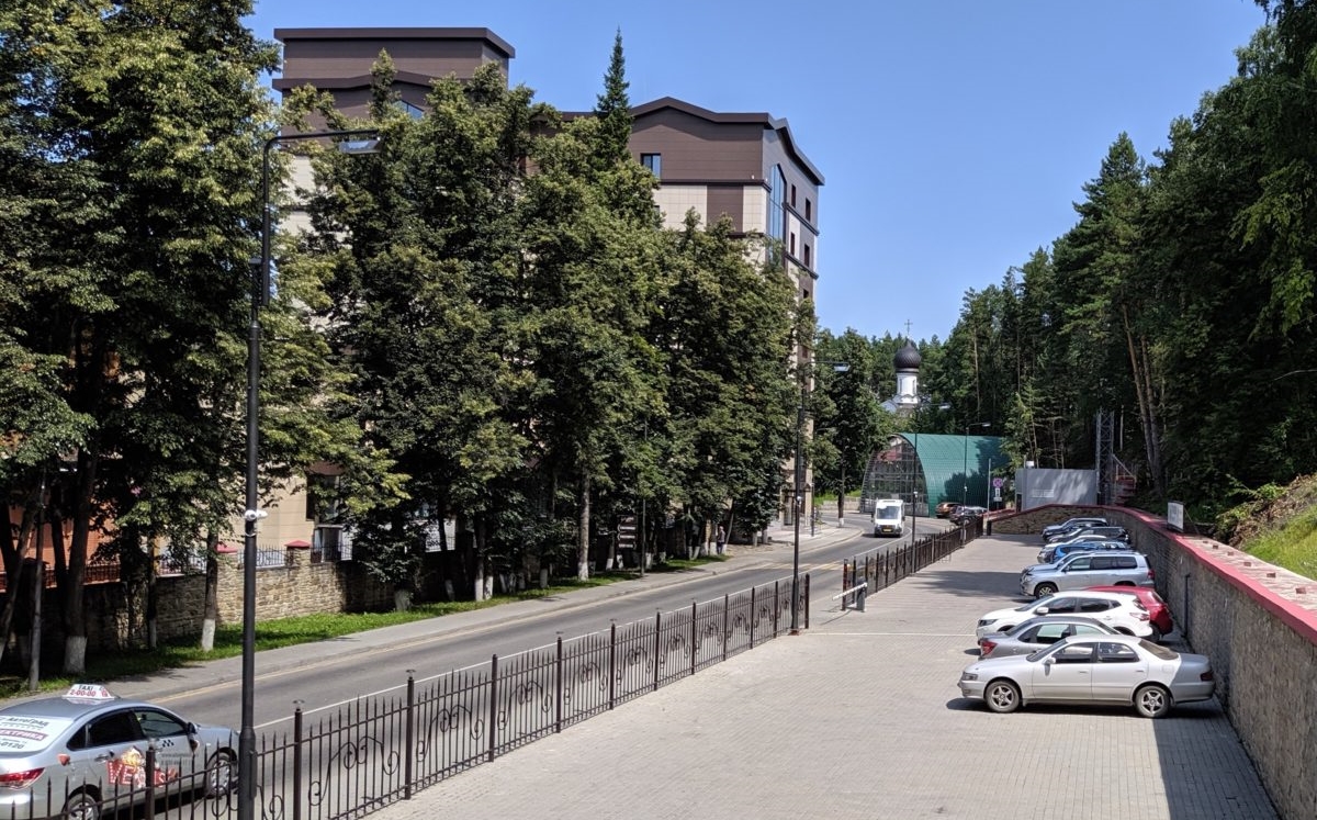 Он находится в отдалении от остальных комплексов, находящихся на курорте, практически в сосновом лесу.