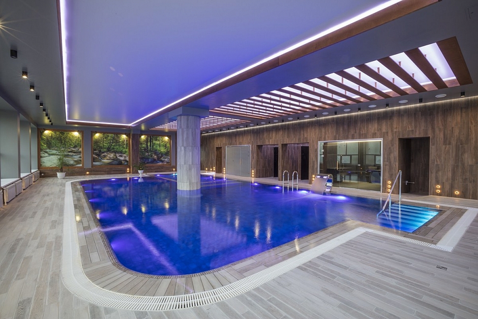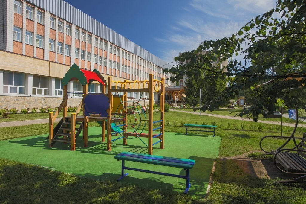 Территория санатория поражает своей красотой и благоустройством. Здесь созданы все условия для активного и пассивного отдыха: спа-центр, бассейн, спортивные площадки, тренажерный зал, а также зоны для прогулок и отдыха на свежем воздухе.