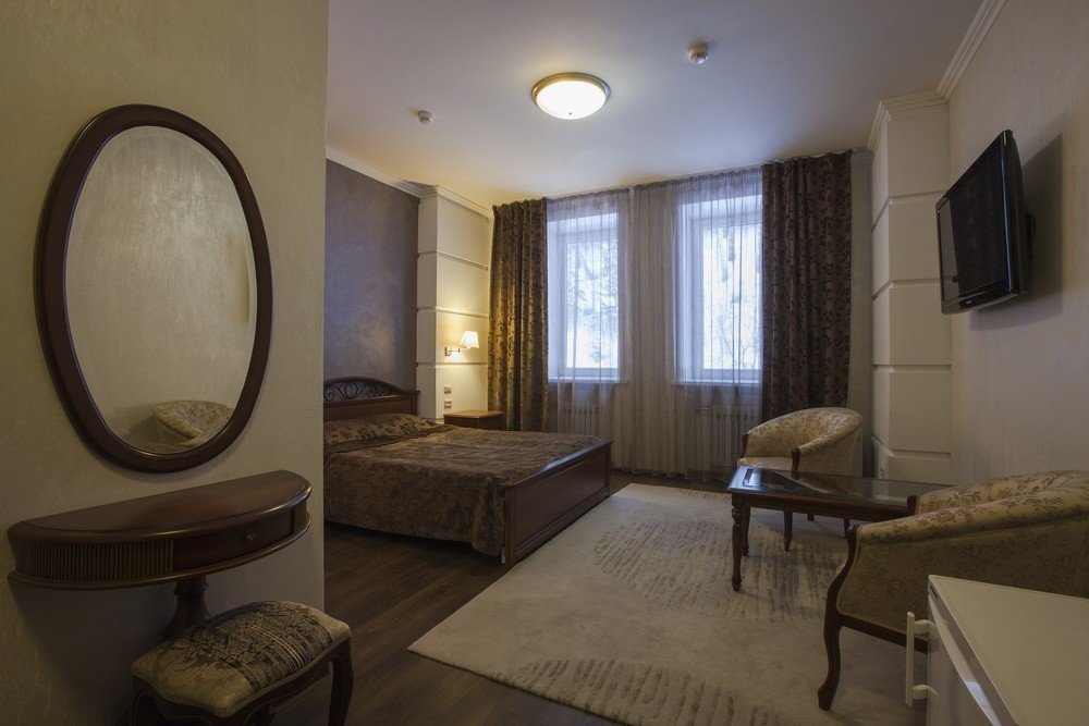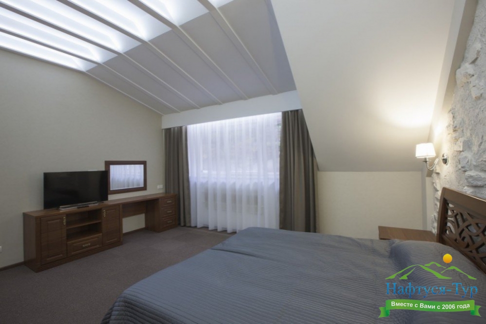 К услугам гостей санатория представлены уютные номера различных категорий с красивым видом на природу. В каждом номере есть все необходимое для комфортного проживания: мягкая мебель, телевизор, холодильник, ванная комната с душем.