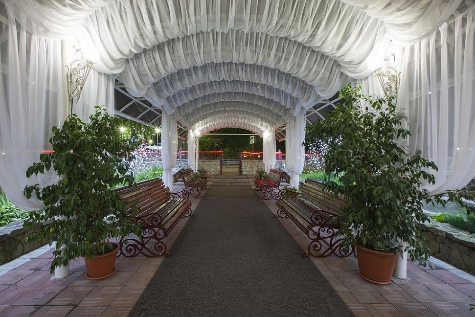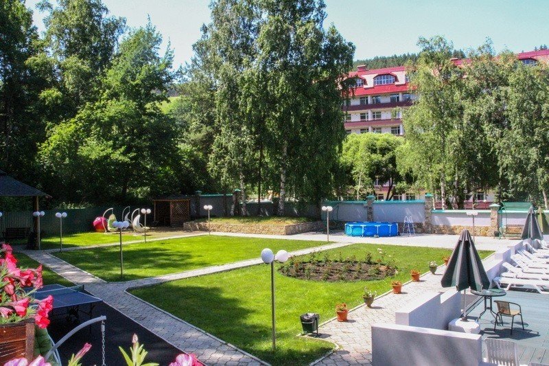 Территория санатория благоустроена и зелена. Здесь созданы все условия для активного и пассивного отдыха: есть спортивные площадки, бассейн, сауна, бильярд и кегельбан. Для любителей прогулок предусмотрены ухоженные парки и аллеи.
