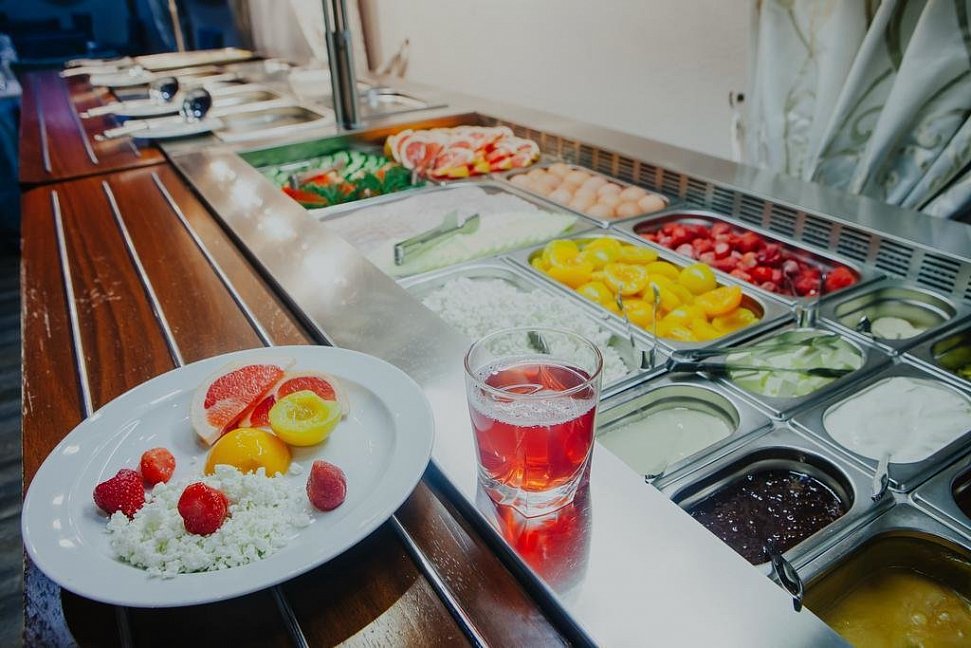 Питание в санатории организовано по системе "шведский стол", что позволяет гостям самостоятельно выбирать блюда по своему вкусу из обширного ассортимента. Блюда приготовлены из свежих и полезных продуктов, что способствует улучшению общего состояния здоровья.
