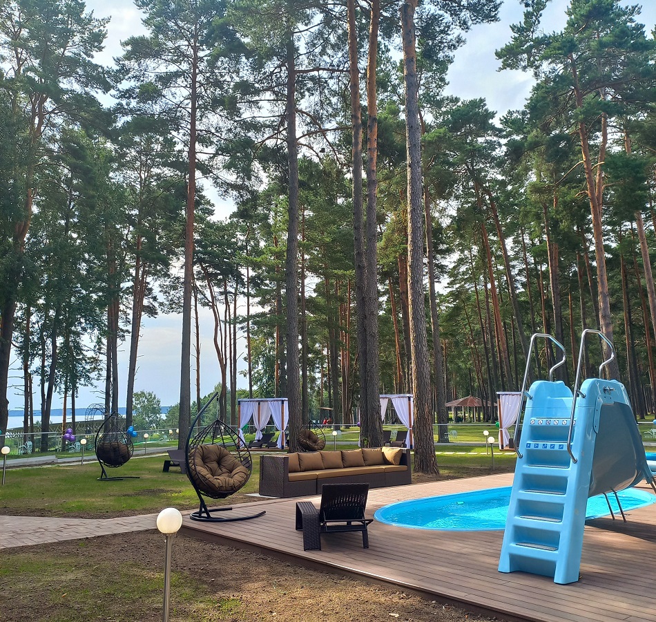 Рядом находятся сосновый лес, с чистейшим воздухом, песчаные берега и отмели, огромное зеркало воды, наличие источников минеральных вод - все это создает благоприятные условия для лечения и отдыха.