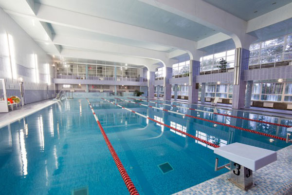 В здравнице имеется прекрасно оснащенный тренажерный зал, бассейн с тремя плавательными дорожками, залы для настольного тенниса и бильярда.