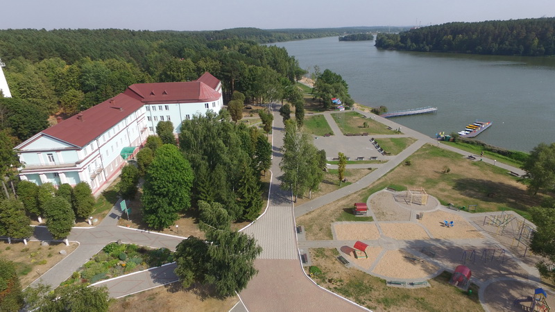 Территория санатория расположена в сосновом бору рядом с Солигорским водохранилищем.