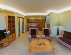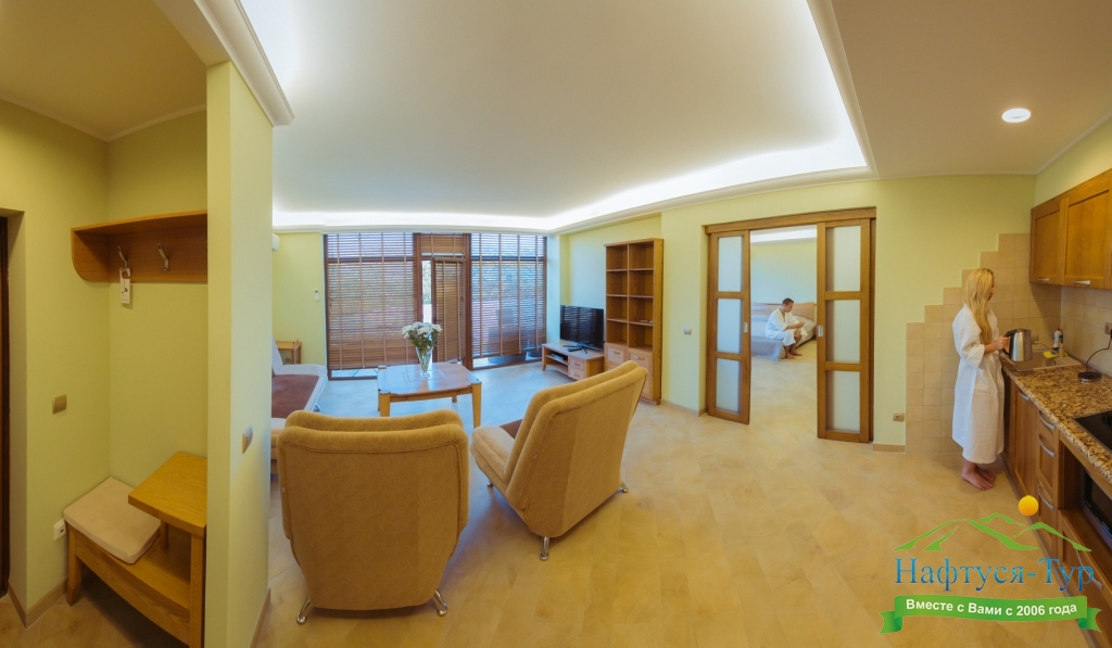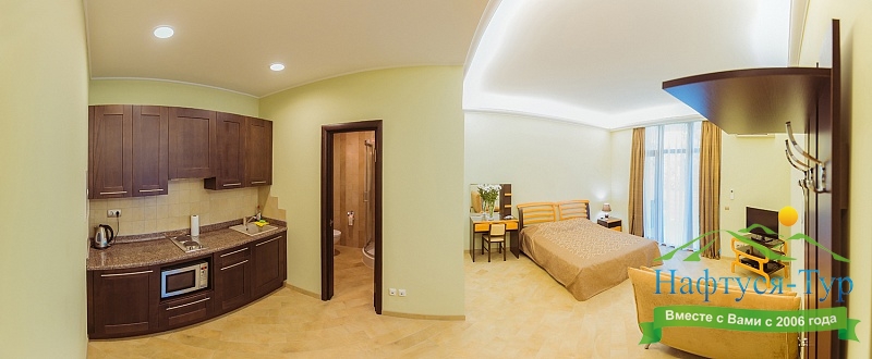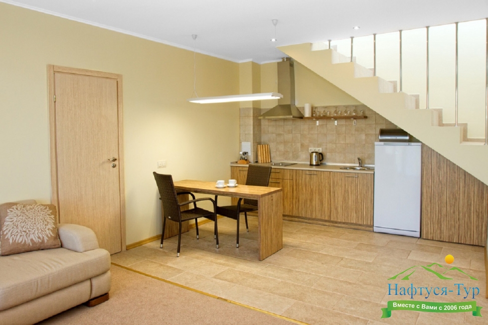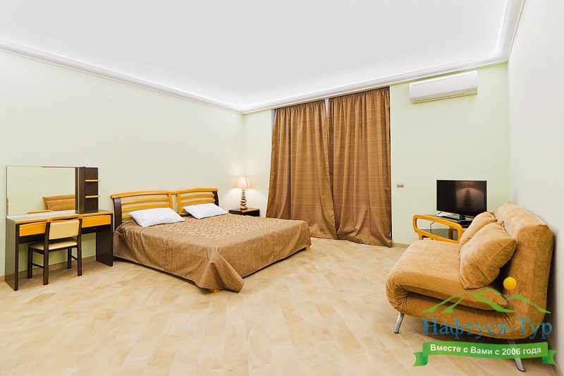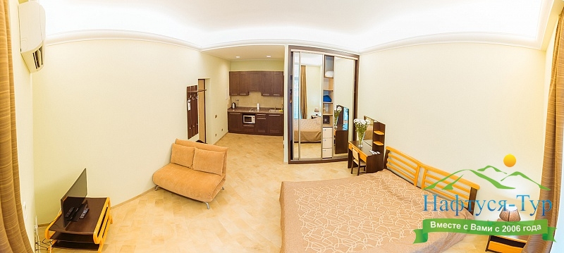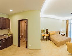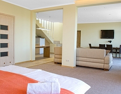 Современный комплекс, который состоит из 37 светлых номеров студио-формата, круглогодично работающим рестораном, караоке-клубом, парковой зоной и салоном красоты.