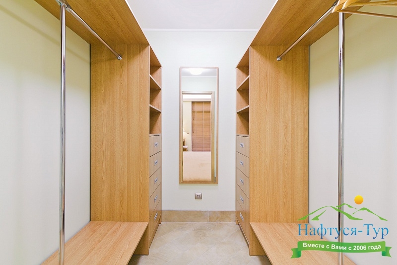 вешалка, зеркало, кровать двуспальная, прикроватные тумбочки, шкаф-купе