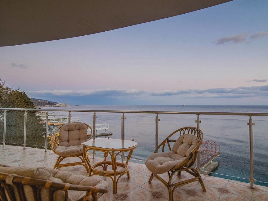 Расположение: Первая линия у моря (20 м до пляжа), 300 м до центра, 100 км до аэропорта Симферополь