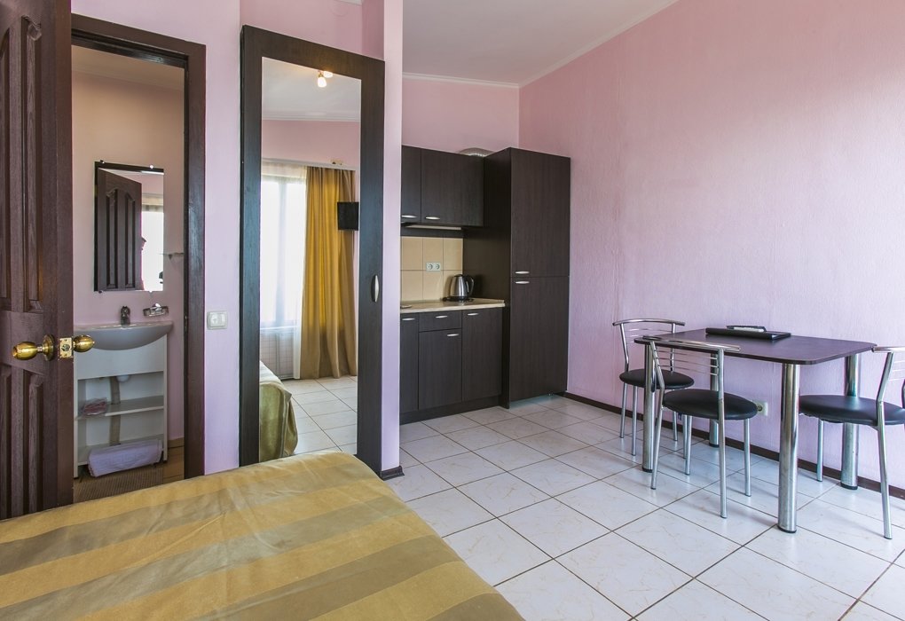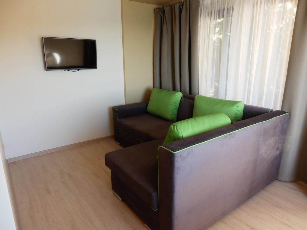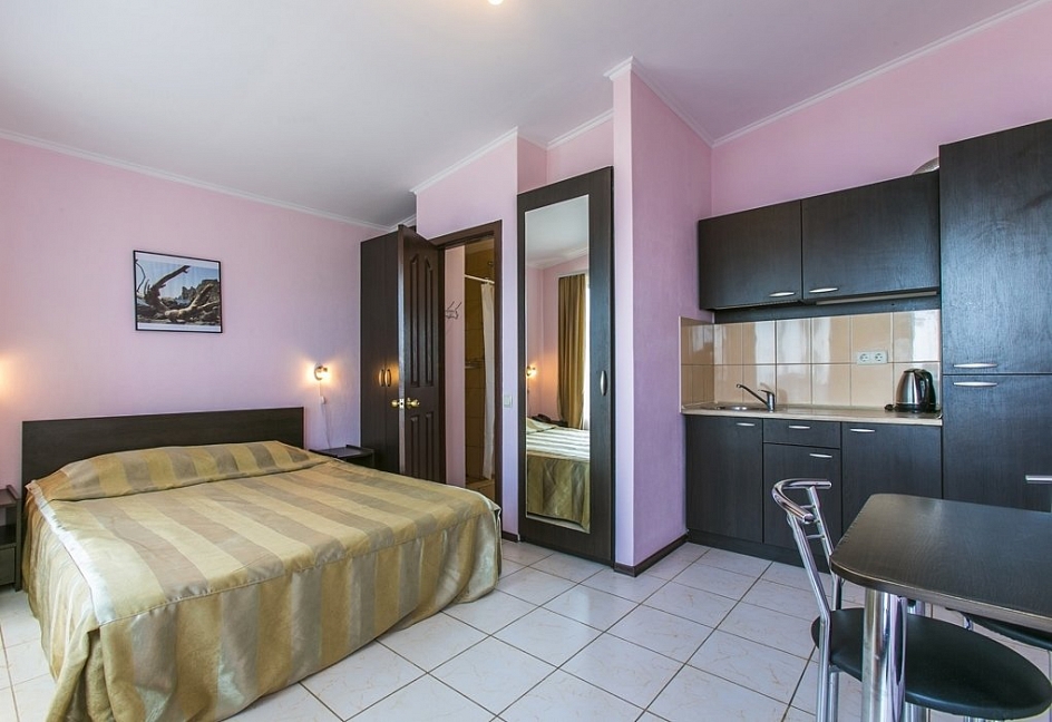 Комплекс имеет очень живописное месторасположение. Мы проживали в двухкомнатном номере на первом этаже домика. Всё есть и плазма, и кондиционер, и набор кухонных принадлежностей. Конечно, если сравнивать с Турцией или Грецией сервис подхрамывает, но это не главное зачем мы сюда приехали.