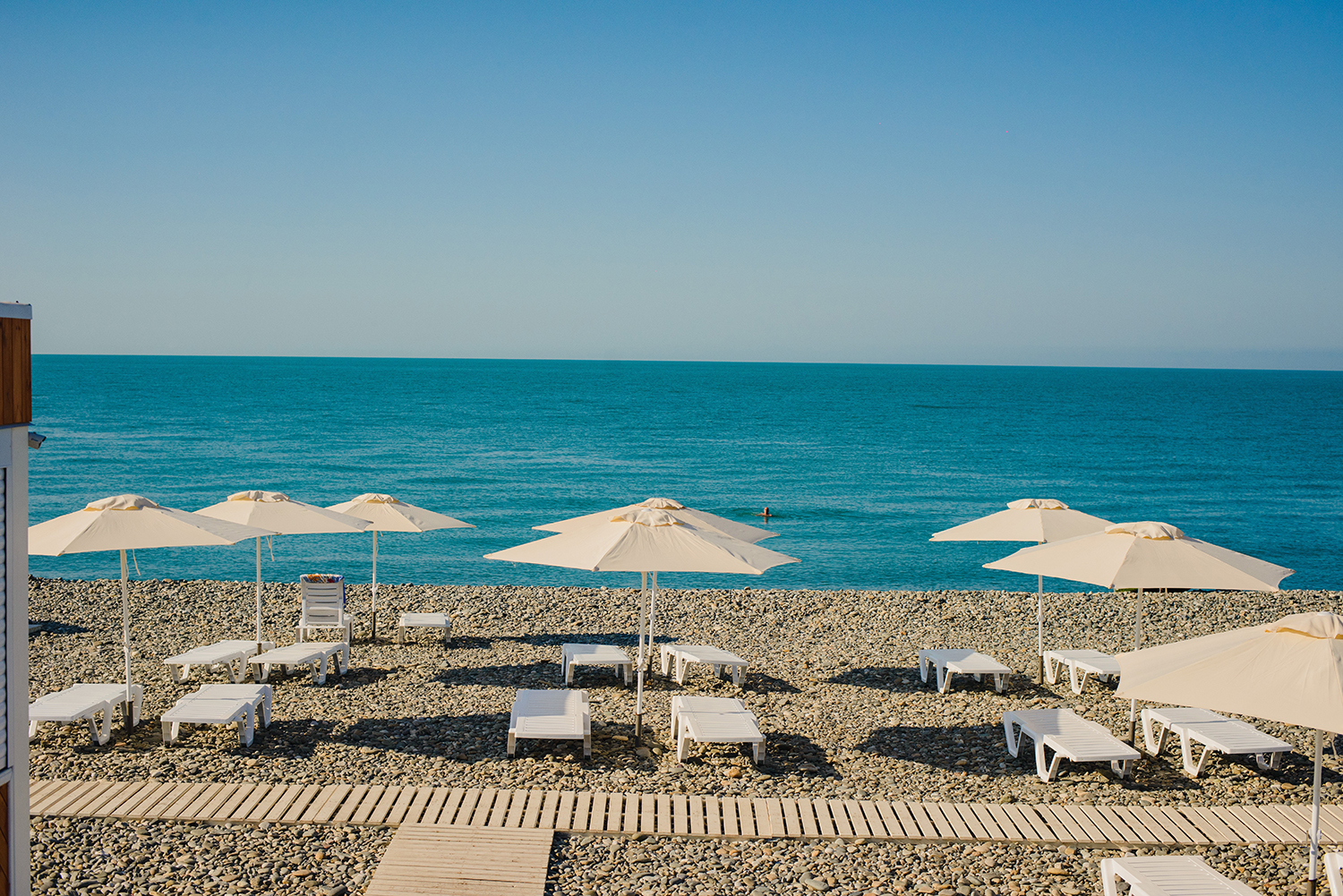 Расположение отеля уникально: с одной стороны открывается великолепный пейзаж Кавказских гор, а с другой – живописный вид на Черное море.