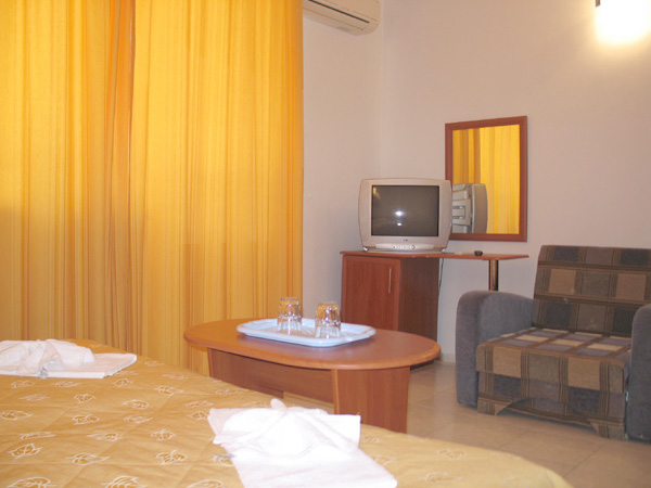 мини-холодильник, пляжные полотенца, сплит-система, телевизор, чайный набор посуды, электрочайник
