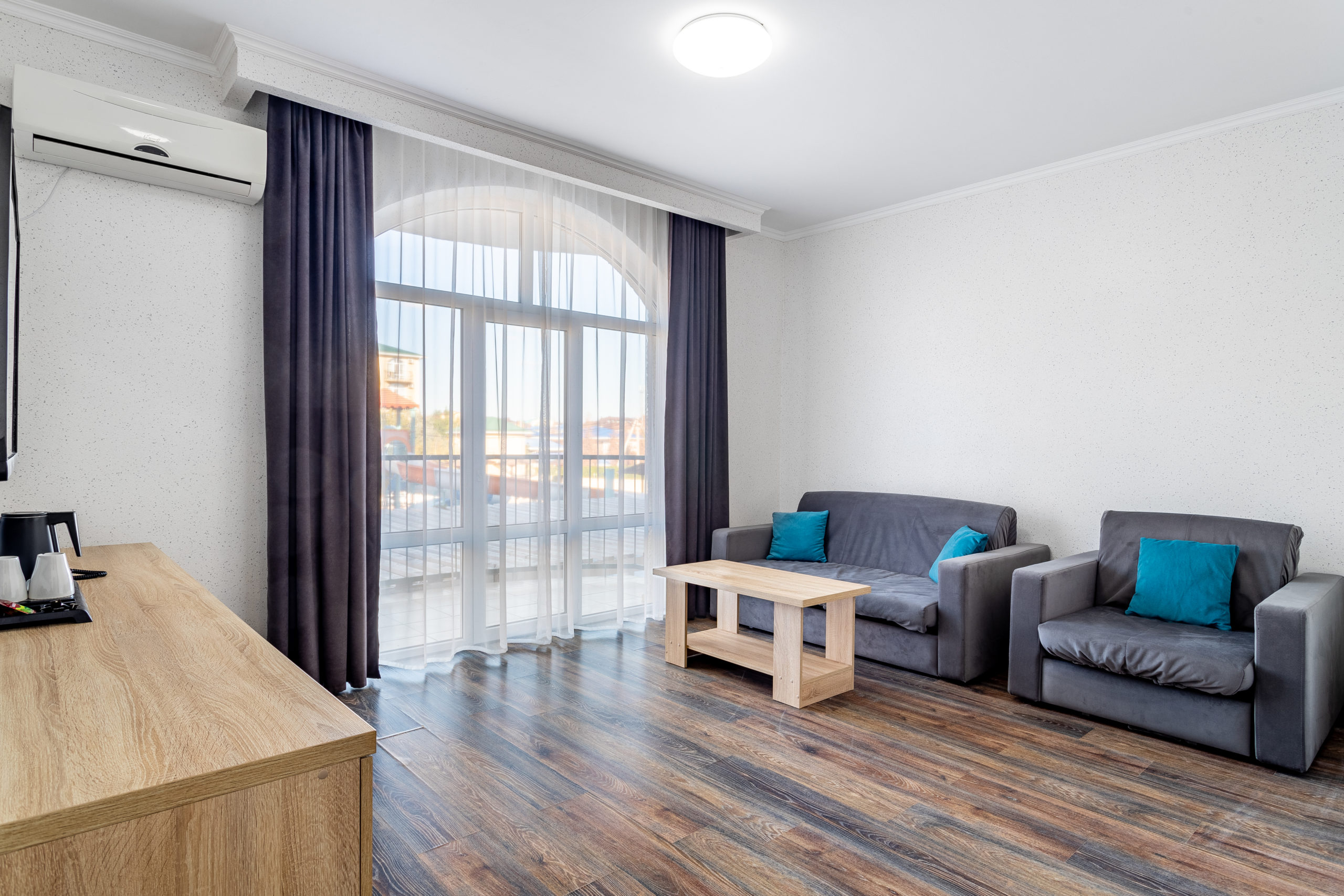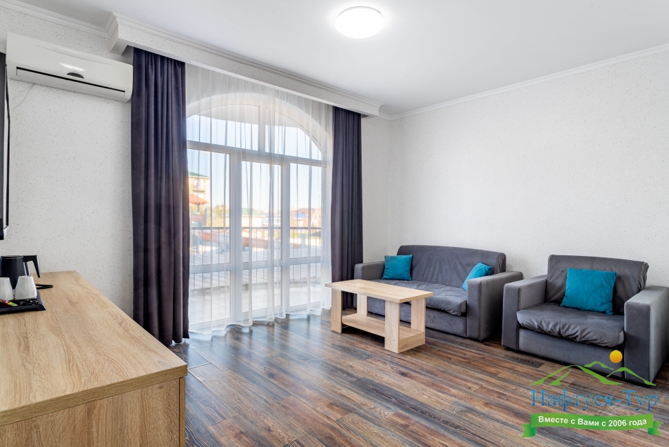 Другого такого отеля в Анапе нету. Вежливый персонал на ресепшене. Ухоженная территория, бассейн и горки очень мило. В целом отдыхом в отеле очень довольны. Номер дали тот, который мы просили при бронировании в турфирме Нафтуся-тур.