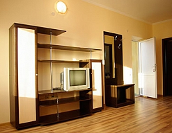 вешалка, зеркало, кровати полутороспальные, прикроватные тумбочки, столик журнальный, тумба багажная, тумба под телевизор, шкаф