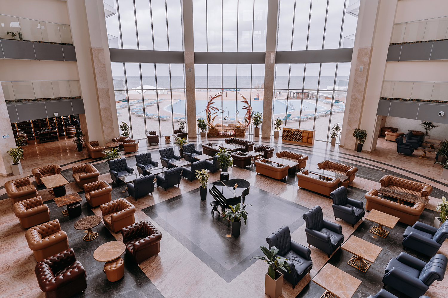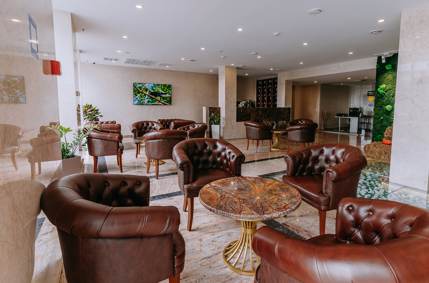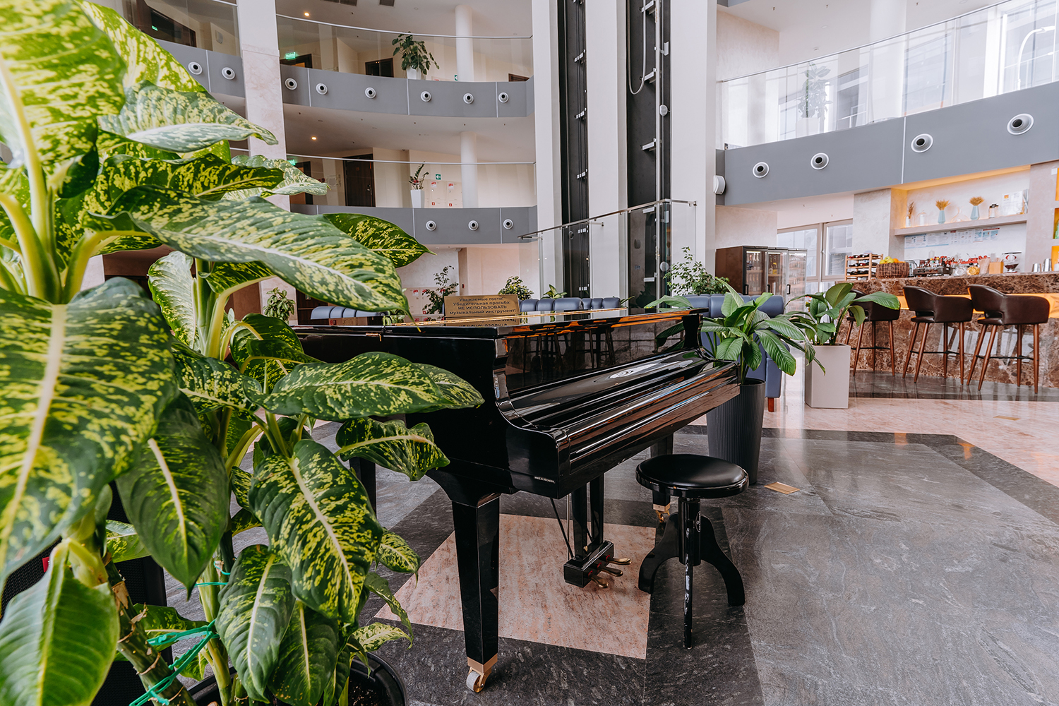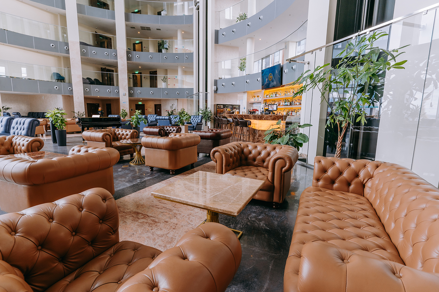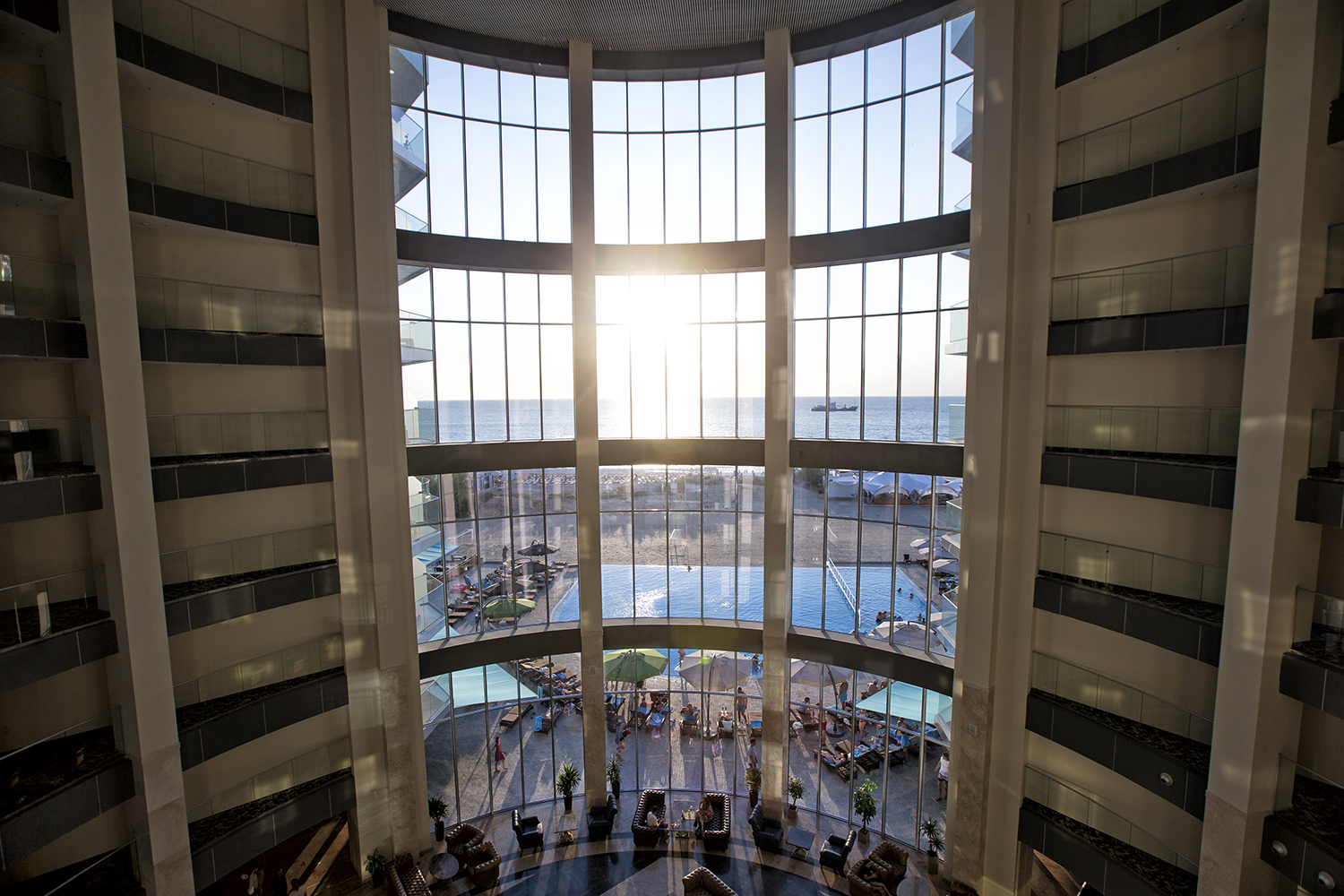 Основной бар отеля с классическим интерьером и панорамным видом на море расположен в самом центре здания - в атриуме на втором этаже. Sam First Bar порадует своих гостей широким выбором элитных алкогольных напитков с разных уголков мира, а также авторскими коктейлями. По вечерам играет классическая инструментальная музыка.