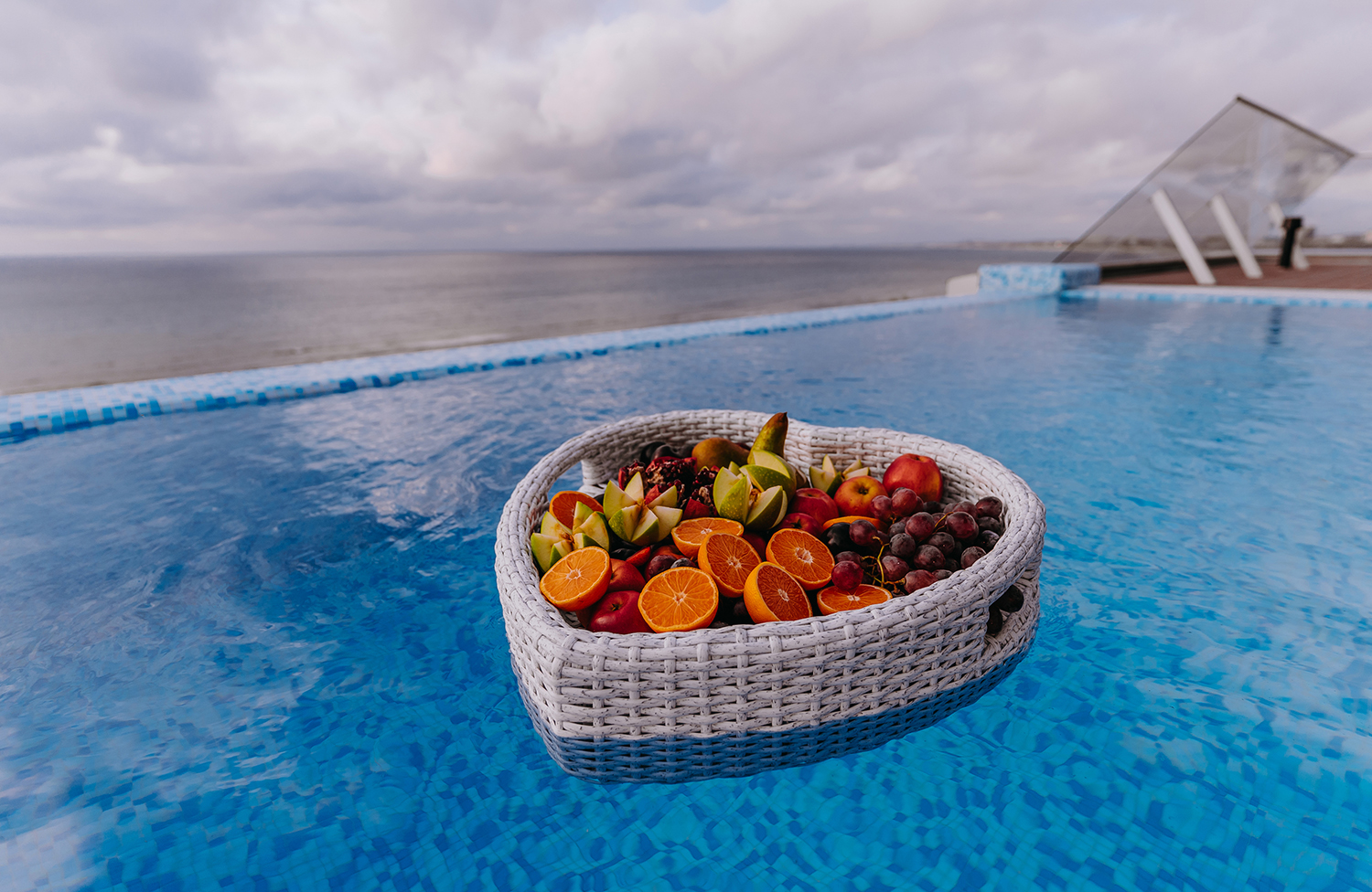 Предлагая напитки в баре у бассейна, мы решили довериться классике. С этим сложно не согласиться, ведь представить более идеальное трио, чем шезлонг, лазурный инфинити-бассейн и прохладный коктейль — невозможно. Ассортимент напитков разнообразен — от безалкогольных освежающих, до коктейлей с игривыми тропическими фруктами и терпкими ликерами. Вам остается самое простое — сделать выбор.