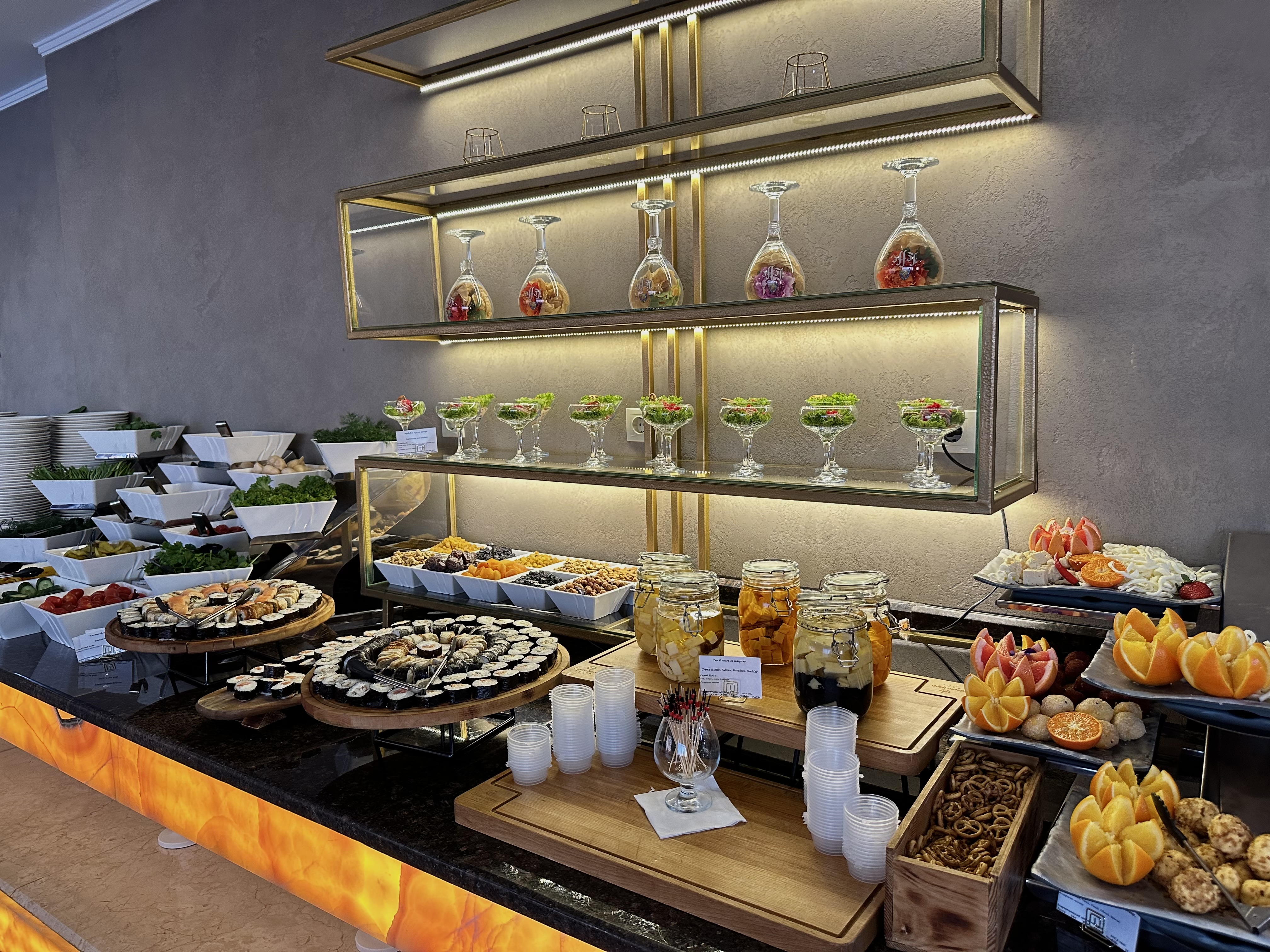 Их Величество — завтрак, обед и ужин. В самом большом ресторане отеля расположился ресторан "шведской линии", в котором представлен широкий ассортимент блюд и безалкогольных горячих и прохладительных напитков, дополненных бокалом игристого на завтрак. Отдельная линия с блюдами, адаптированными для детского питания.