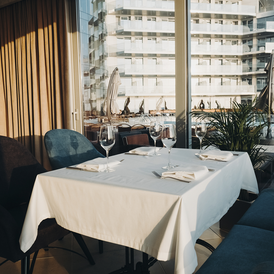 Изысканный видовой ресторан a la carte, предлагающий гостям стейки из премиального мяса, приготовленные в печи Хоспер, а также авторские блюда из рыбы и морепродуктов. Винная карта представлена лучшими образцами вин России, Старого и Нового Света. Авторская коктейльная карта.