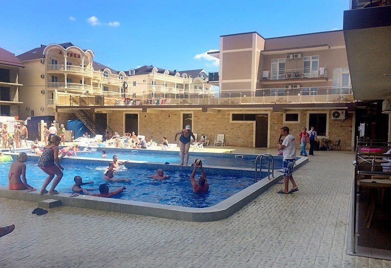 Отдыхали в «Морском раю» с 08 по 15 августа 2016 года в составе троих взрослых и двоих детей 7 и 13 лет. Соответственно заранее было забронировано два номера, они оказались просто супер: оба с видом на бассейн на 3 и 6 этажах, цена приемлемая.