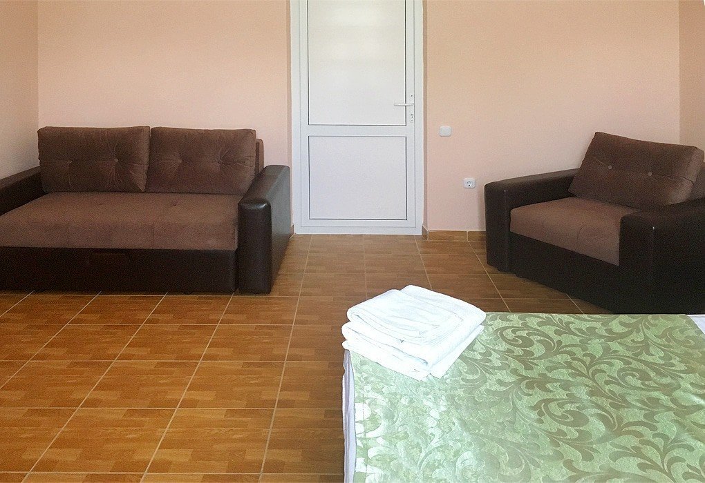 Расположение: Первая линия у моря (50 м до пляжа), 11 км до центра Анапы, 8 км до аэропорта Анапа