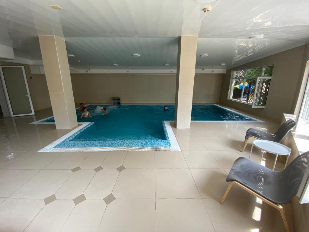 В нашем отеле 36 номеров в современном европейском стиле. Номера укомплектованы всем необходимым, чтобы сделать отдых беззаботным и комфортным. На тихой, скрытой от посторонних глаз территории отеля располагается зона для загара, а также 2 бассейна: детский с горкой и для selfie. Все номера первого и второго этажа расположены с видом на бассейн.