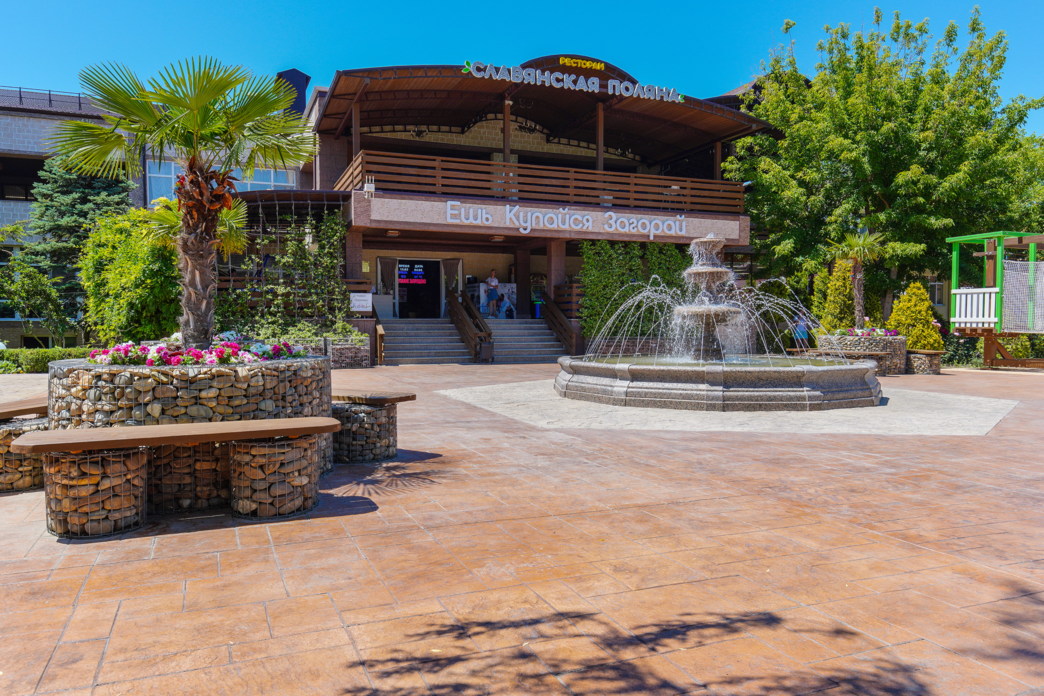 «Славянка», это еще один отель в Анапе, который предлагает систему все включено. Расположен он на Пионерском проспекта – центре курортной жизни города рядом с дельфинарием, аквапарками и аттракционами. Территория пансионата очень ухоженная и зеленая с тремя бассейнами и местами отдыха, спортивными и детскими площадками, тренажерным залом и киноконцертным залом. Для детей имеется комната с воспитателем. До собственного пляжа, оборудованного всем необходимым всего 700 метров.