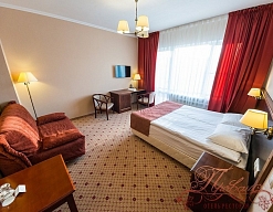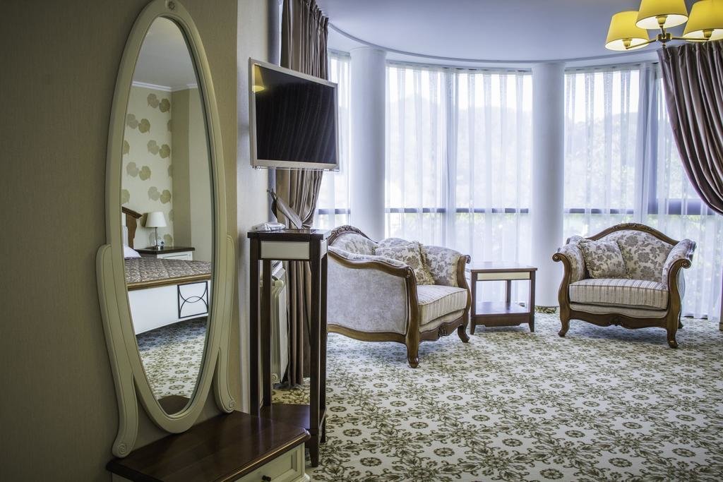 Уютный отель. Прекрасное расположение, рядом парк, лес, речка, питьевая галерея, достопримечательности. Недалеко озеро, где можно позагорать. Тихо, несмотря на то что отель расположен в курортном центре.