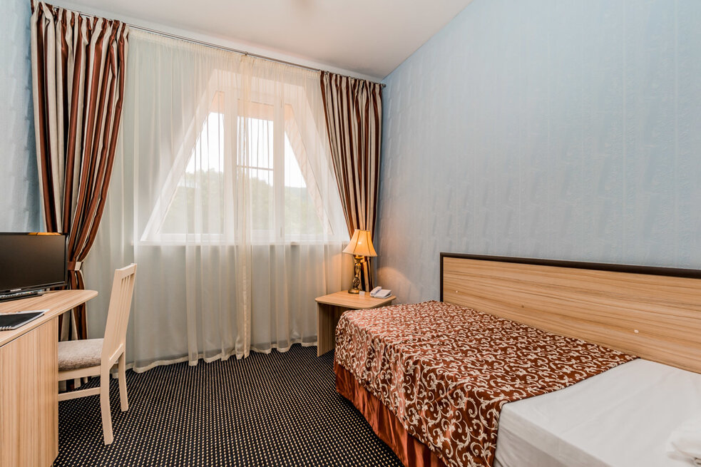 Путевку в санаторий получила на работе. Из Москвы добиралась на самолете до Краснодара, потом на такси, которое предоставил санаторий. Дорога до Горячего Ключа занимала примерно час. Номер у меня был одноместный, достаточно просторный, с феном и тапочками. Правда, не было халата, пришлось взять в аренду в самом санатории, 50 рублей стоила.