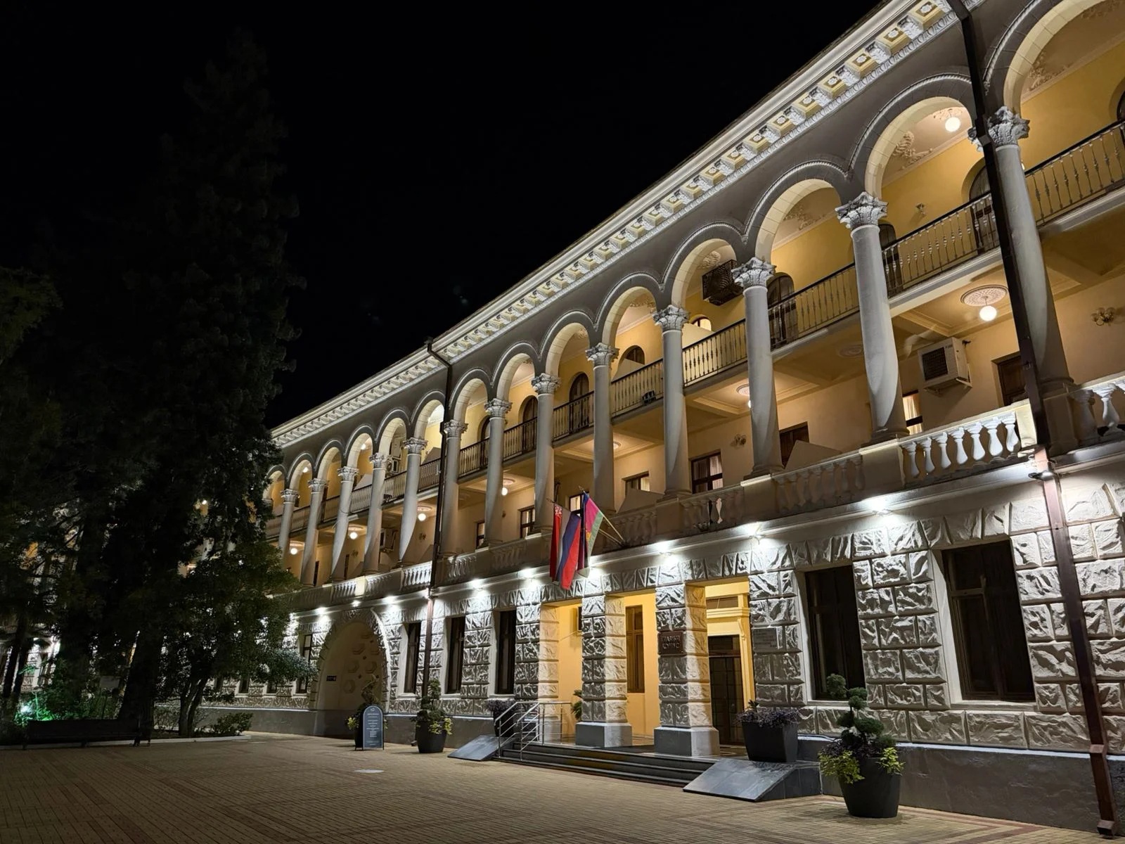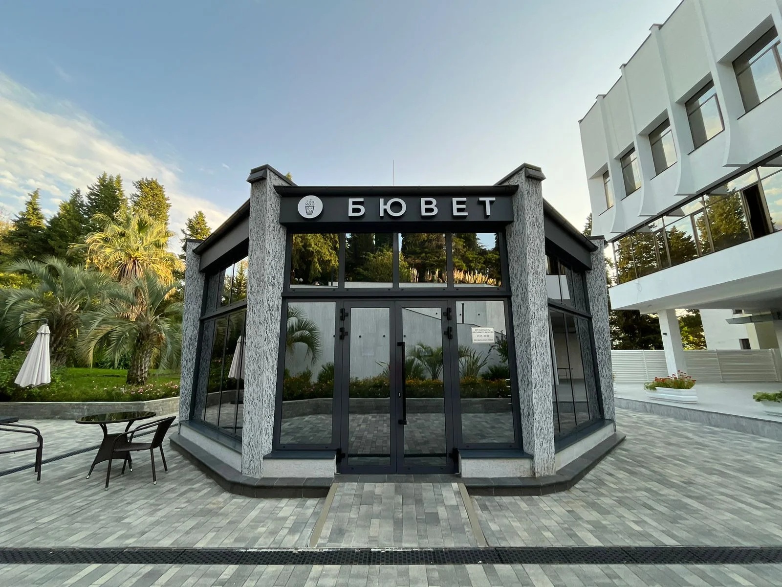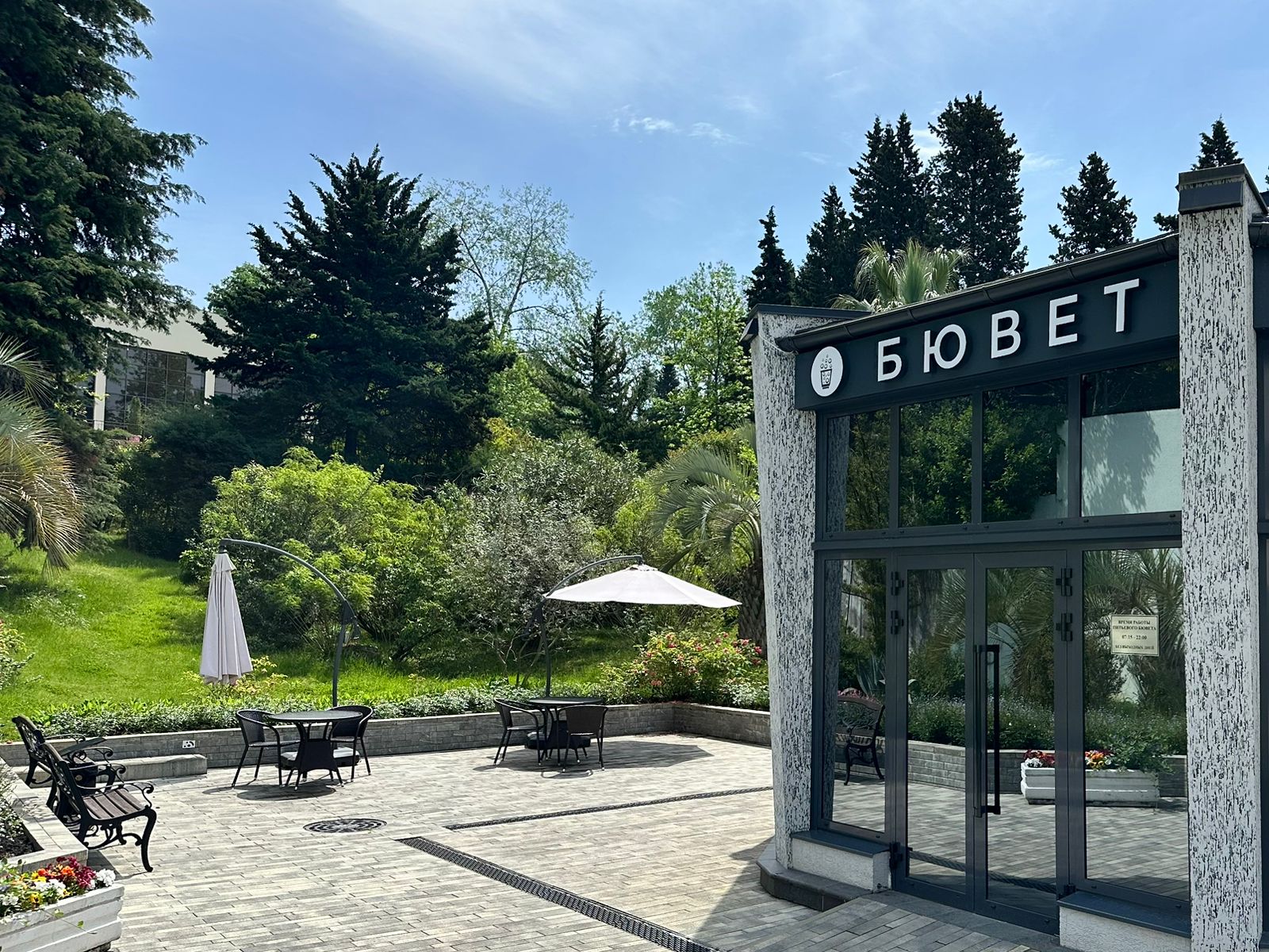 Комплекс отеля находится в роще благоухающей пицундской сосны и окружен реликтовым хвойным лесом.