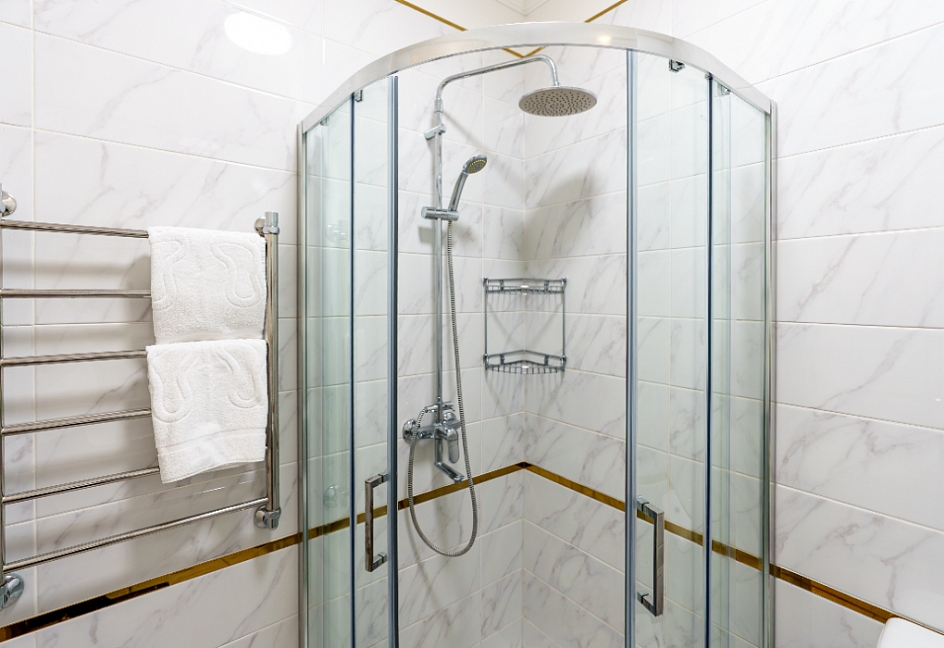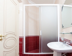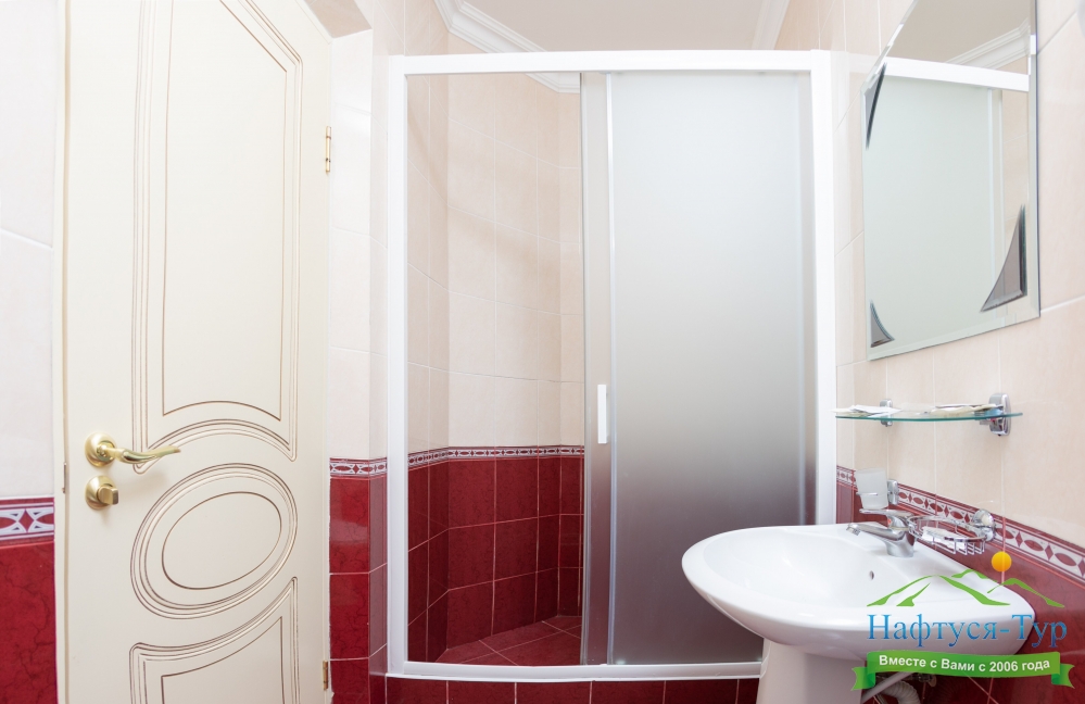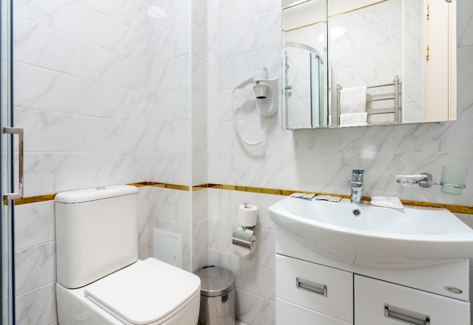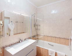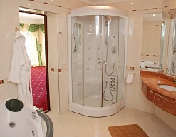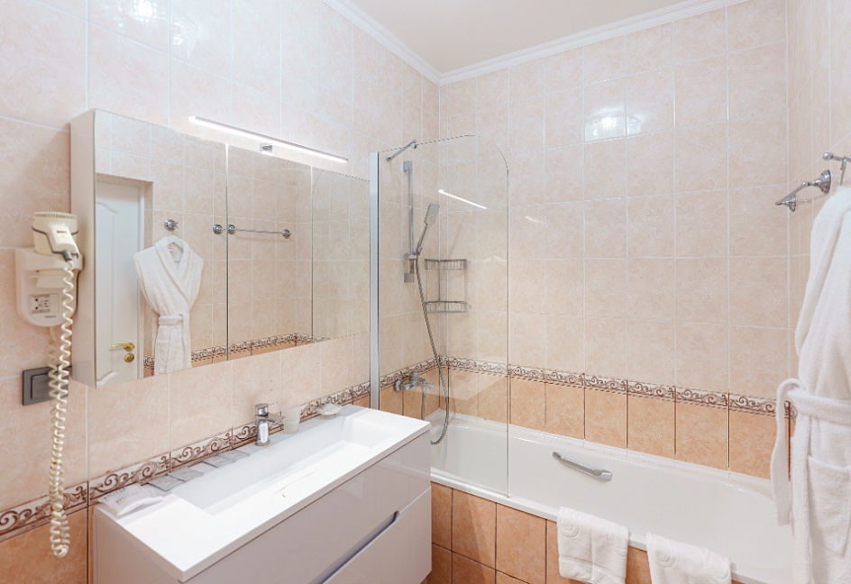 биде, с ванной, с джакузи, с душевой кабиной, тапочки, туалетные принадлежности, фен