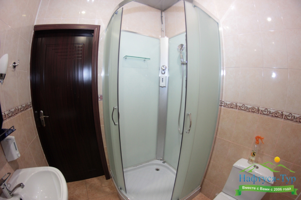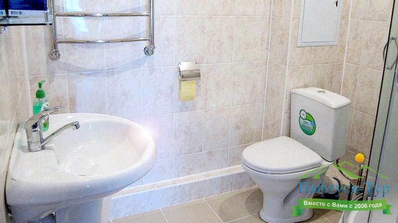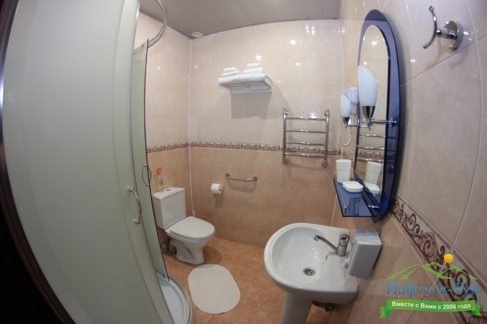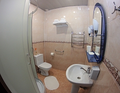 с ванной или душевой кабиной, туалетные принадлежности, фен