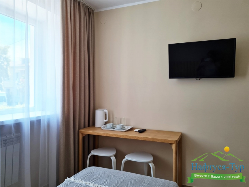 кондиционер, мини-холодильник, телевизор, чайный набор посуды, электрочайник